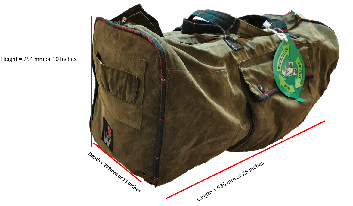 This specific bag, the weekend bag, was made from 100% original Barbour Northumberland parts. The jacket itself was actually a 48-inch chest, 1980’s model of Barbour Northumberland, which we at Wax Jackets Cleaned have reformed into the masterpiece you see here! Absolutely no wastage, we used every single part of the original item that we could. If cared for properly, this sturdy and robust bag will give you many years of usage.